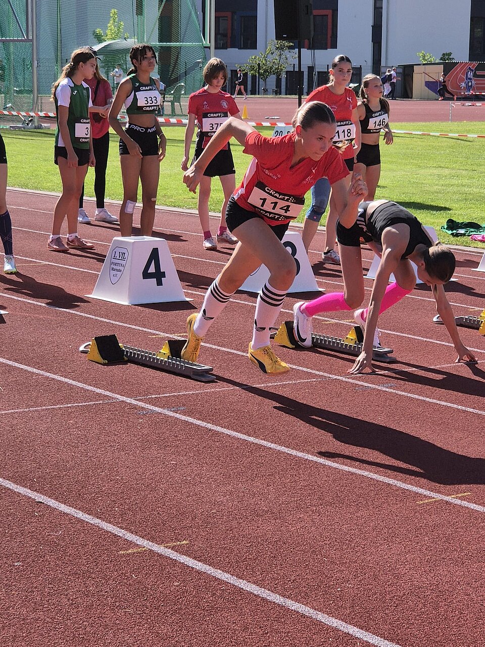 Im 75m Sprint der W13 gehen Rebecca Lange, Charlotte Böhmer und Marlene Schmid an den Start. Rebecca (VfB) bleibt mit 10:89sek zwar knapp unter ihrer PB, qualifiziert sich aber dennoch für das B-Finale.