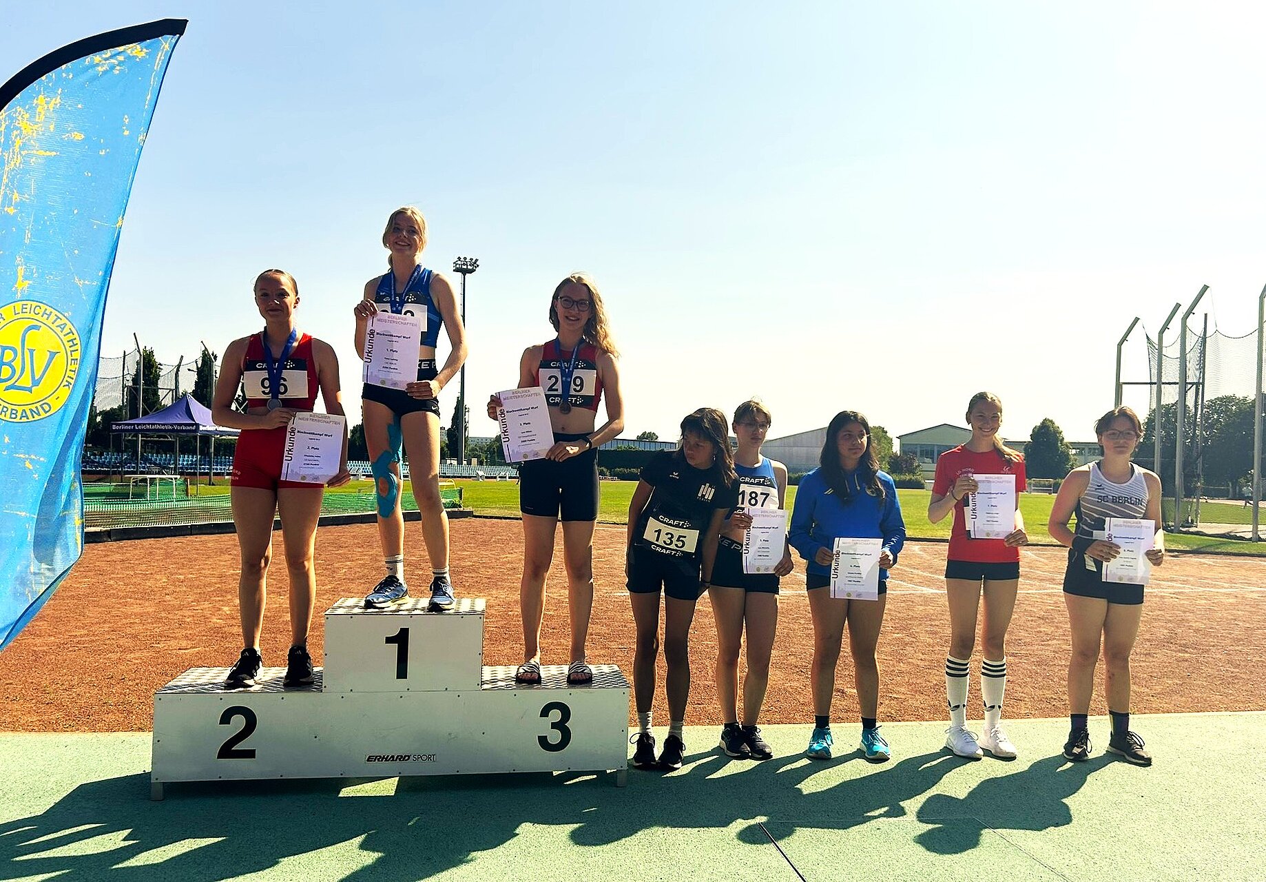 Am 14. und 15. Juni 2025 fanden die Berliner Meisterschaften im Blockmehrkampf im Sportforum statt. Mit einem kleinen Feld starteten die Mädchen am Samstag im Block Wurf (Charlotte Höhn und Rebecca Lange sowie Klara Ludorf) im Block Lauf (Lea Lankes und Luise Reutter) und im Block Sprint/Sprung (Nike Senff). Es waren jeweils 75m, 60m H und Weit zu absolvieren. Im Wurf kamen Kugel und Diskus, im Lauf Ball und 800m und im Sprint/Sprung-Block Speer und Hochsprung als Disziplinen dazu. Es war noch nicht ganz so heiß, wie bei den Jungs am Sonntag, trotzdem machte die Hitze den langen Wettkampftag schwierig.