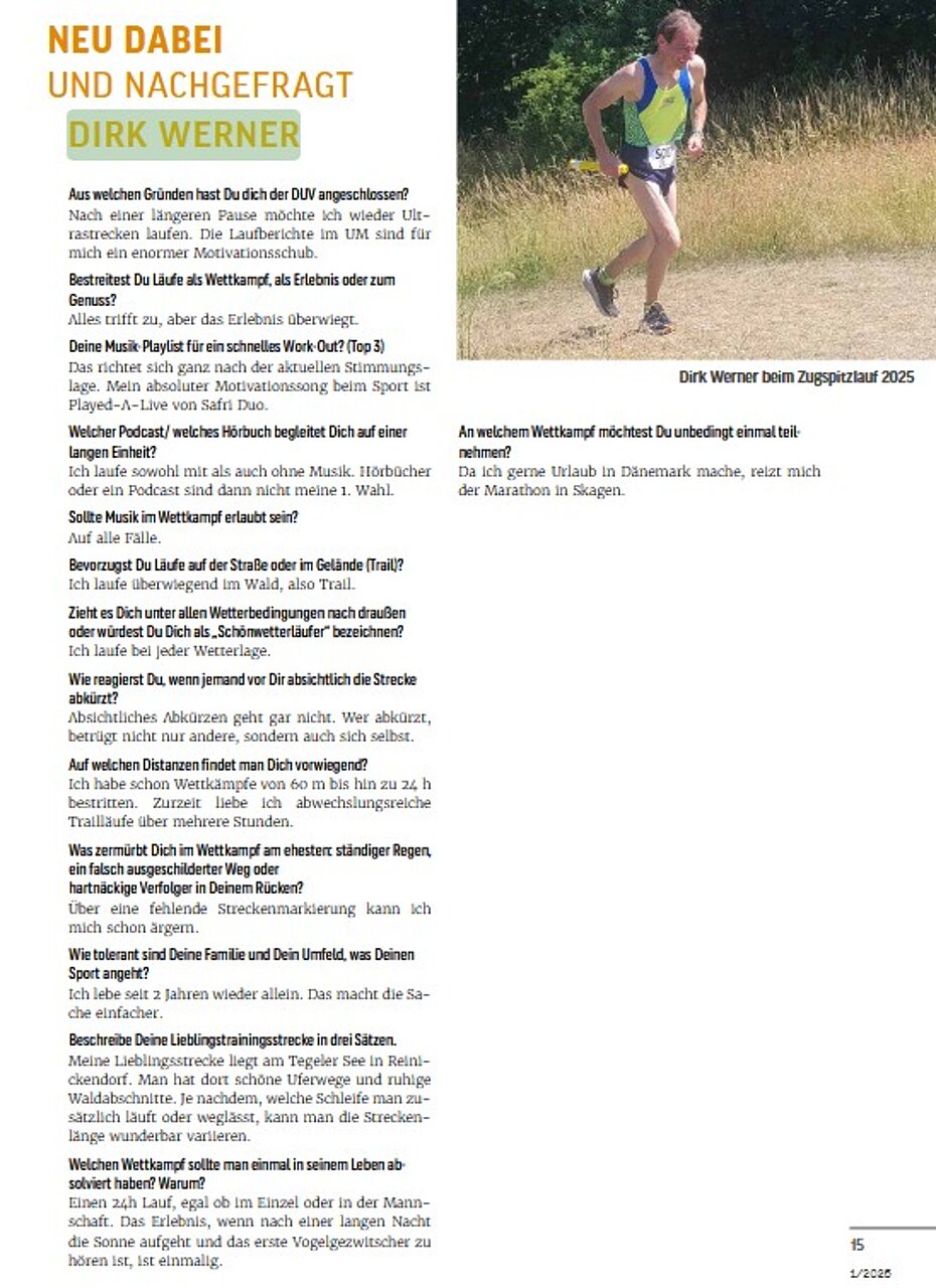 Das Interview der Aktuellen Ausgabe im Wortlaut mit freundlicher Genehmigung der Redaktion 'ULTRAMARATHON':