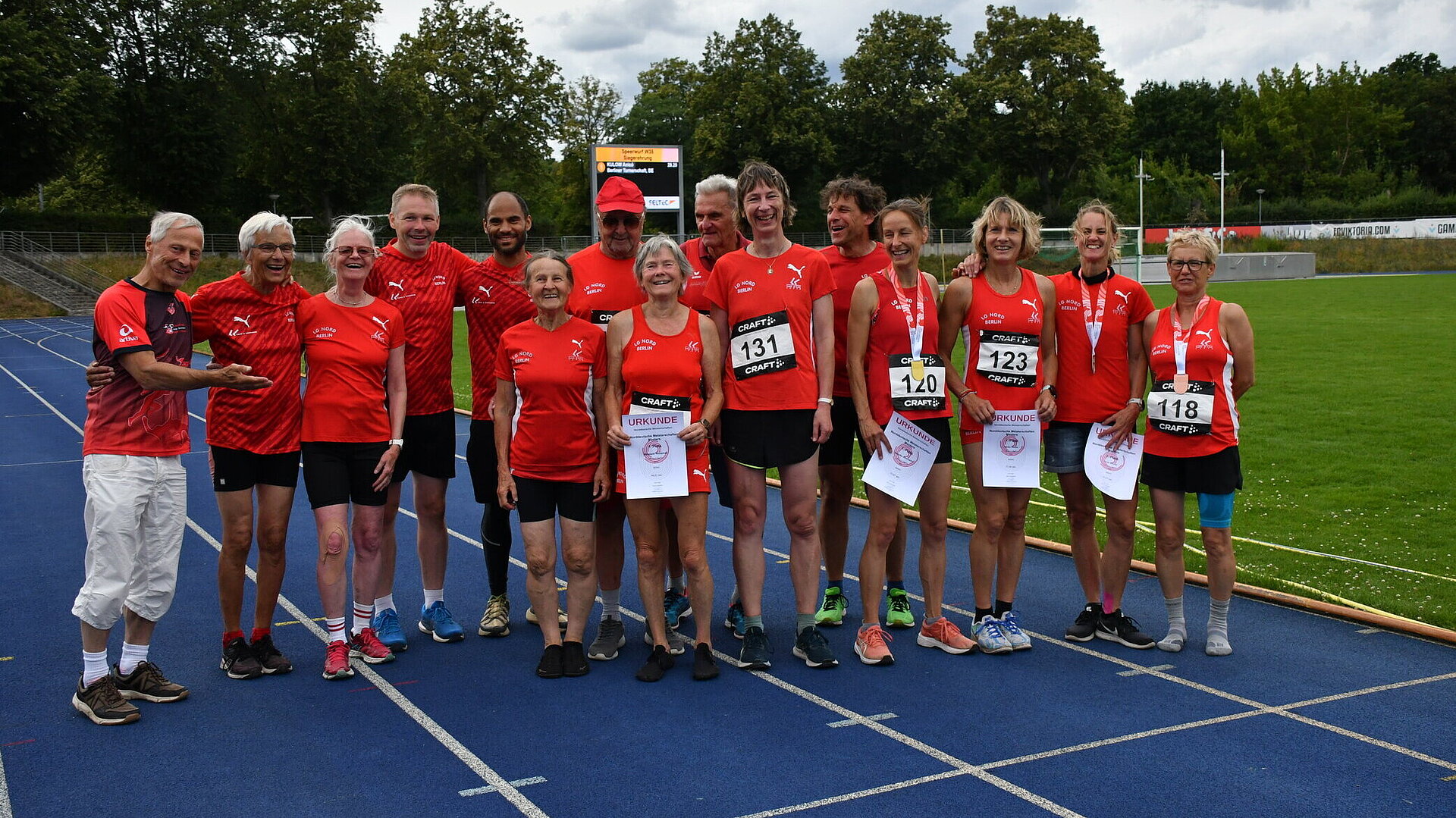 Die Bedingungen waren für Sprinter perfekt, alle übrigen litten etwas unter der prallen Sonne und den hohen Temperaturen. Aber die Ergebnisse können sioch sehen lassen. 21 Gold, 9 Silber- und 11 Bronzemedaillen, dazu viele PBs und sogar Club und LG-Rekorde. Die Medaillen
