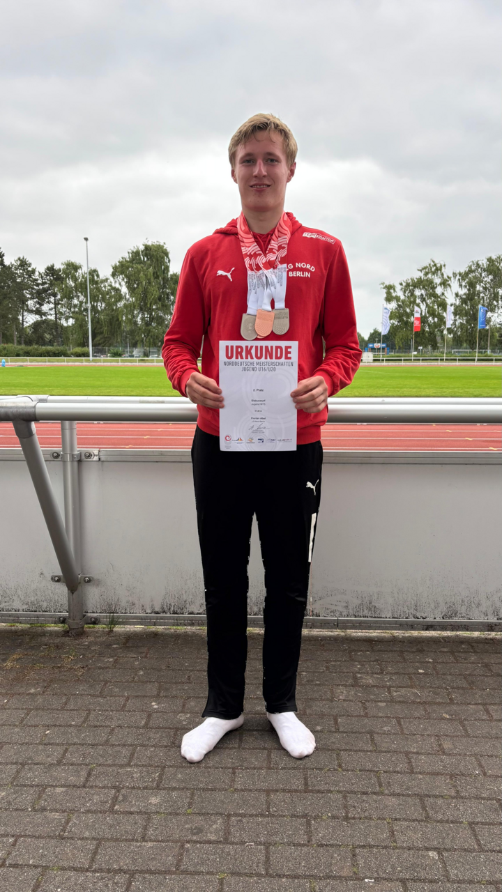 Vom 04.-06.07. finden die DM der U16 und der U23 in Ulm statt. In der U16 geht unser Multitalent Florian Abel an den Start. Er hatte im bisherigen Saisonverlauf sein hohes Niveau in gleich mehreren Disziplinen unter Beweis gestellt. Florian schaffe es in gleich vier Disziplinen (Kugel, Diskus, 100m und 300m) die Qualifikationsnorm für die DM zu erfüllen!!! Da die Regularien für die U16 eine Teilnahmebeschränkung auf zwei Einzeldisziplinen vorsehen, mussten Florian und sein Trainerteam im Vorfeld eine Auswahl treffen: Er startet daher jetzt im Kugelstoßen und 300m Lauf und hofft hier auf eine Top Ten Platzierung. Zusätzlich mit seinem Vereinskamerad Eric Sacksofsky wird er auch mit der LG Nord Staffel über 4x100m starten.