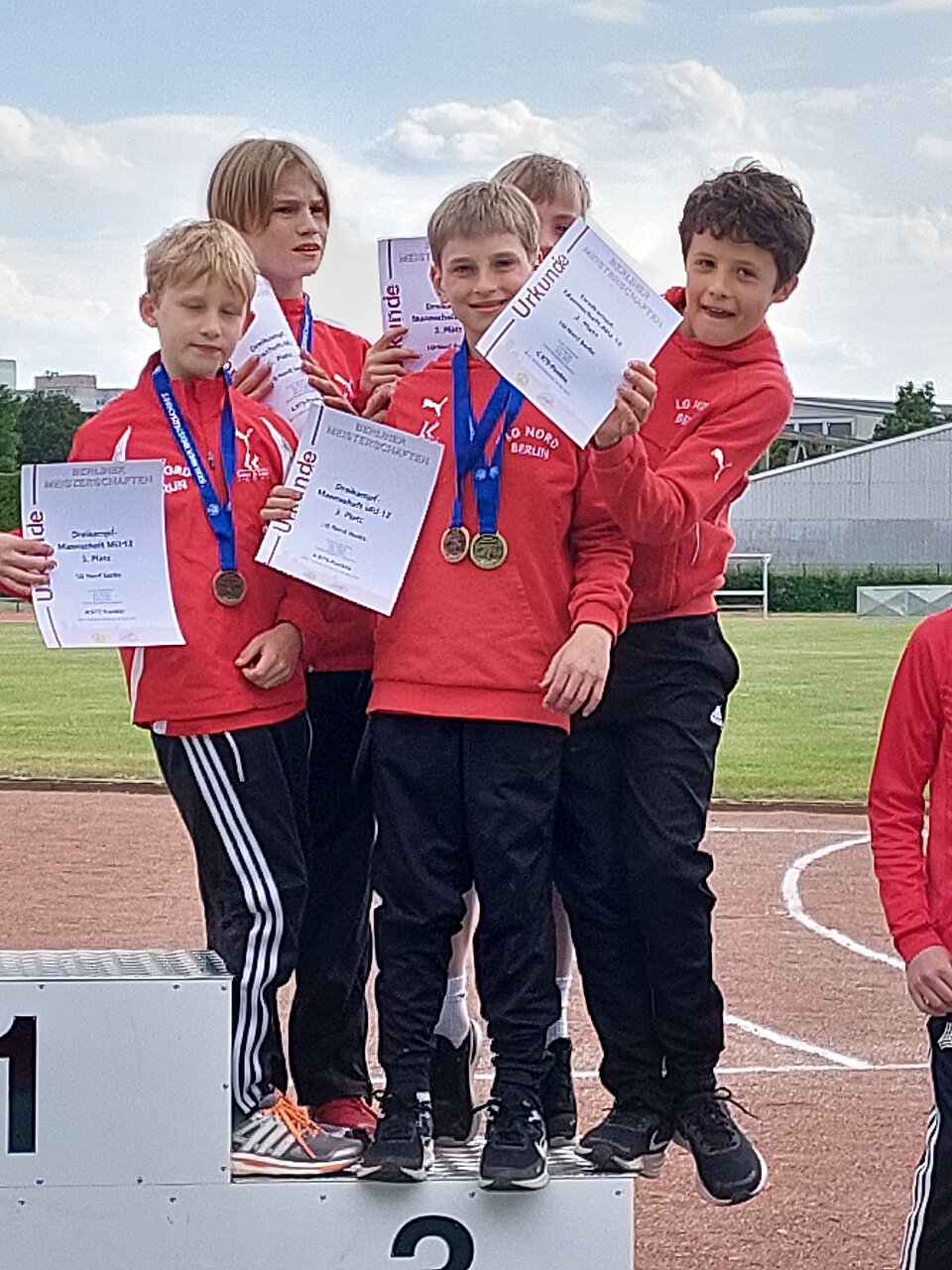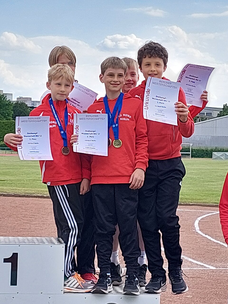 Am Samstag starteten die Jungs bei meist sonnigem Wetter und angenehmen Temperaturen und alle erreichten mindestens eine neue persönliche Bestleistung. In der Gesamtwertung hatte am Ende in der M10 Timo den 1. Platz erreicht und damit Gold und den Meistertitel. In der M11 kamen Lucas auf den 6. Platz und Lars auf den 7. Platz. In der Teamwertung kamen die Jungs damit auf den tollen 3. Platz und sicherten sich die Bronzemedaille.