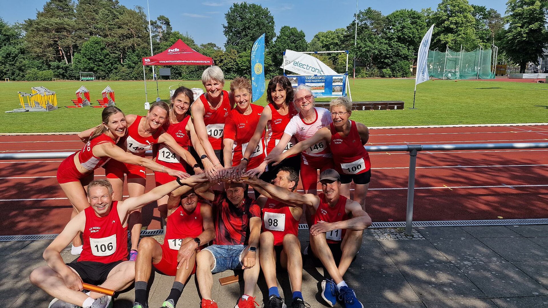 Es war für Trainer Thomas Rohnstock nicht ganz einfach, die Staffeln zusammenzustellen und gleichermassen schnelle und sichere Stabübergaben zu schulen, aber alle Mühen wurden belohnt. Die insgesamt 9 Wechsel haben alle funktioniert, die Zeiten durchaus passabel, insbesondere wenn man berücksichtigt, dass viele Läufer in einer deutlich jüngeren Klasse gestartet sind.