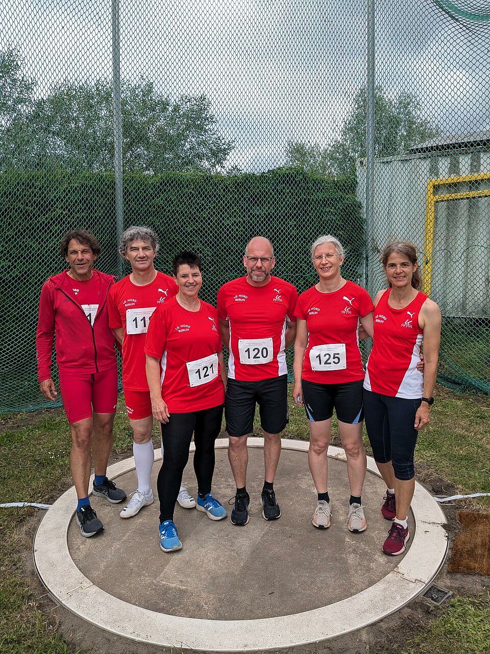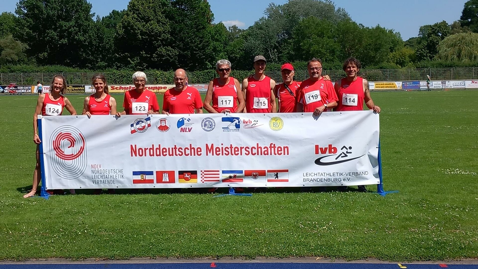 Die Bedingungen waren allerdings tadellos. Die Bahn hatte man mit einer nagelneuen blaue Tartanschicht versehen, neben dem Rund standen sachattenspendende Bäume, die örtlichen Abiturienten finanzierten mit Kuchenverkauf ihren Abiball. Das für Sonntag angekündigte Unwetter beschränkte sich auf 15 Minuten Starkregen und beeinträchtigte nur den Speerwurf der W50+, ansonsten schien die Sonne.