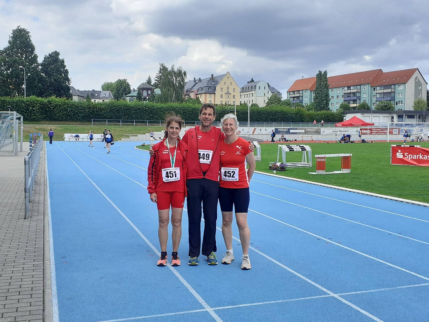 Mit 259 weiteren Teilnehmern kämpften sie um Titel und insbesondere um fehlende Qualifikationen für die DM. Fast 6 Stunden für Hin- und Rückfahrt waren zwar viel, aber trotzdem hat sich der Ausflug gelohnt. Das Mittweidaer Stadion am Schwanenteich ist wunderschön und top gepflegt, die Organisation der Meisterschaft professionell, entsprechend war auch die Stimmung im Stadion. Es wehte starker böiger Wind, echte Bestleistungen waren schwierig. Aber die erbrachten Leistungen waren dank Gegenwind immerhin überwiegend regulär.