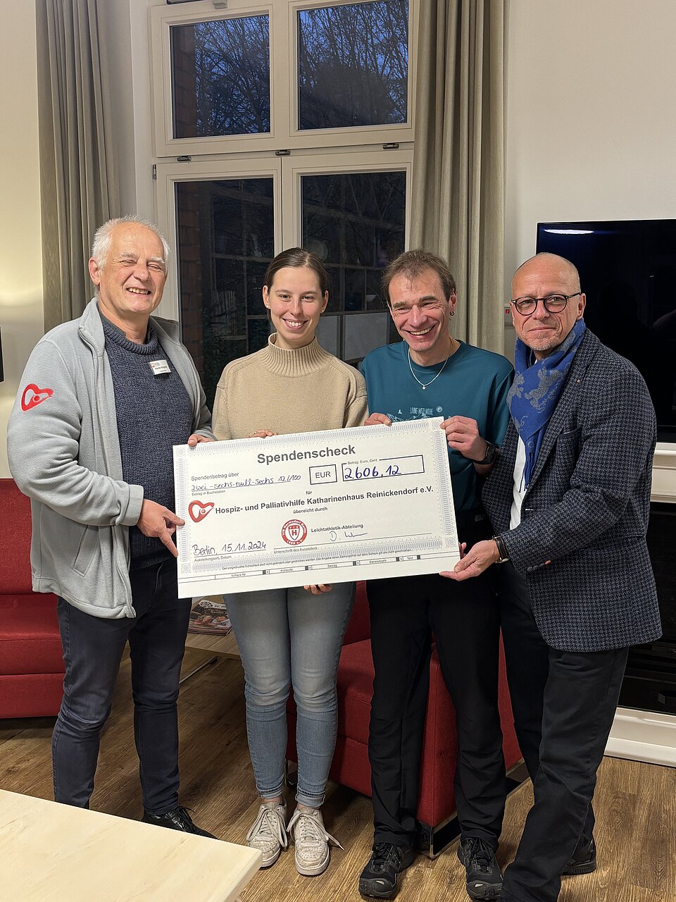 Mit einem großen Spendencheck überreichten Dirk und Clara zum Schluss die Summe von 2.606,12€ an Herrn Ermisch und Herrn Wiegardt.