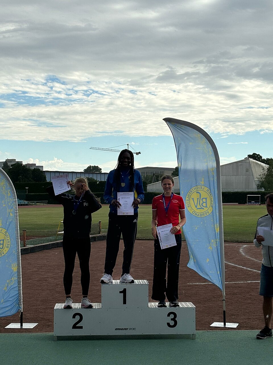 Über 100m gewann sie die Silbermedaille. Leider können Ihre tollen Zeiten (VL 12,78s und EL 12,67s) wegen etwas zu starkem Rückenwind keinen Einzug in die Bestenlisten halten.