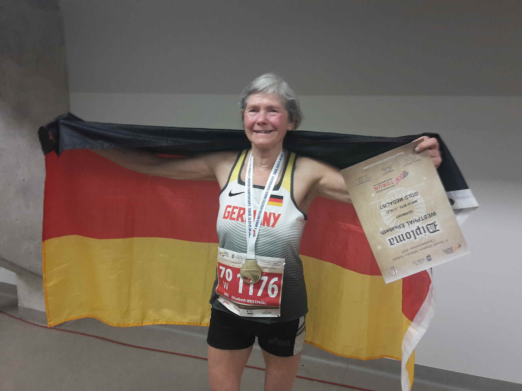 Als 5. Nordler*in in Torun hatte Elisabeth Westphal für ihre Spezialdisziplinen 800m und 1500m gemeldet. Beide Läufe wurden zu unserem absoluten Höhepunkt, denn Elisabeth gewann beide Wettbewerbe völlig überlegen. 2 Weltmeistertitel gingen also an unsere LG Nord, und bei Elisabeths Staffeleinsatz in der 4x200m-Mixed kam noch eine Bronzemedaille hinzu. Mit 2 Gold- und 2 Bronzemedaillen war diese WM unsere bisher erfolgreichste – trotz des Ausfalls von Gudrun, der wir baldige und vollständige Genesung wünschen. Doch mehr noch als das positive Abschneiden waren wir alle von der tollen Stimmung und stärkenden Gemeinschaft – Vereins- und Länder-übergreifend – begeistert und freuen uns nun auf die Freiluft-EM in Pescara Ende September; und im März 2024 lädt uns diese sehenswerte Stadt Torun schon wieder ein, dann zur Hallen-EM mit vielleicht noch mehr Nordlern.